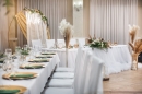 ? sale weselną o powierzchni dopasowanej do planowanej liczby uczestników, z uzgodnionym ustawieniem stołów i parkietem do tańca